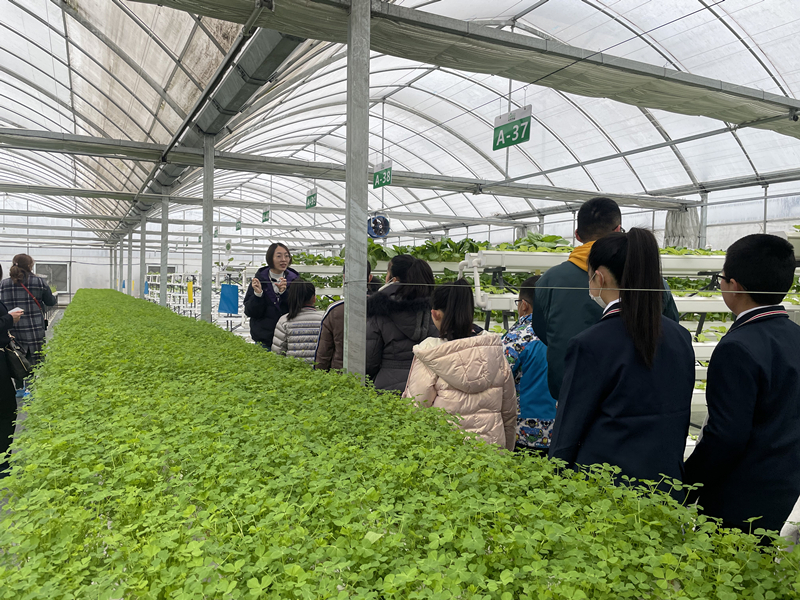 在基地中,小朋友們邊參觀邊聽大農(nóng)的工作人員對水耕種植的詳細(xì)講解。對于孩子們的提問,工作人員也充滿耐心的向孩子們一一解釋,聽到基地的蔬菜不打農(nóng)藥,都是生物防蟲還生長的這樣繁茂的時候小朋友們驚訝極了。